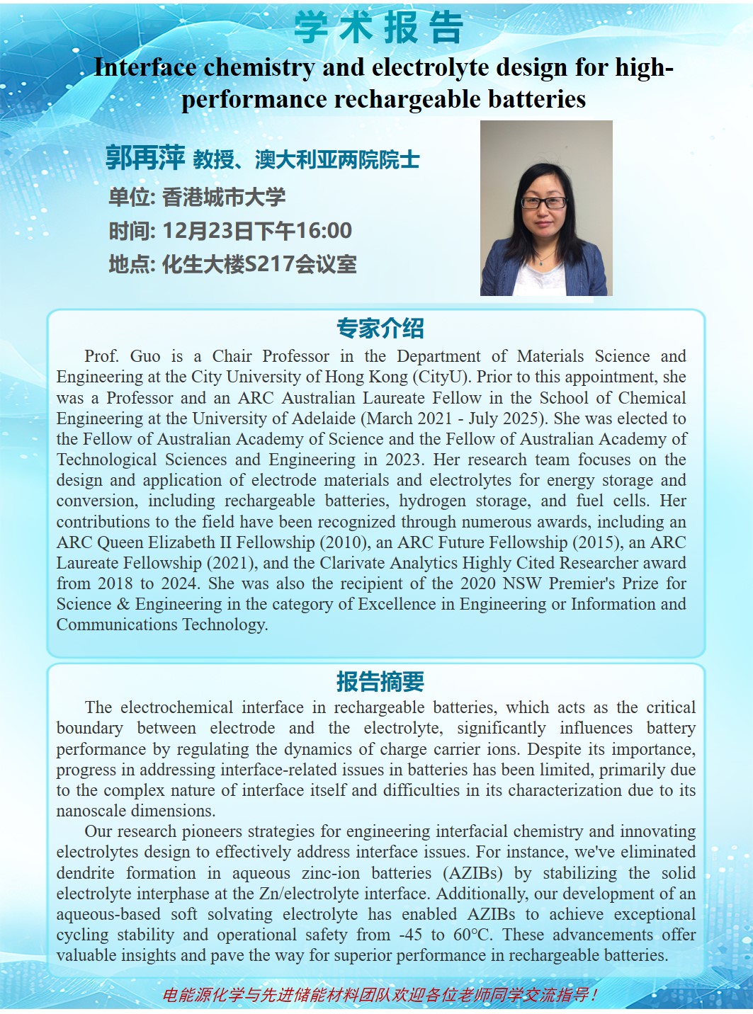 【学术讲座】郭再萍教授学术讲座