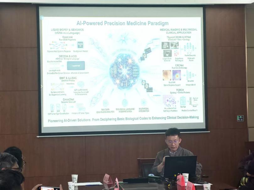 天津医科大学肿瘤医院李祥春教授围绕深度学习在癌症早筛早诊中的创新应用进行了汇报。他介绍了利用循环游离DNA(cfDNA)监测并融合人工智能技术体系所实现的技术突破,涵盖癌症早期检测、病灶定位及无创基因分型等方面。此外,他还分享了人工智能技术在微生物组研究中的潜在应用,为相关领域提供了新的思路与启发。